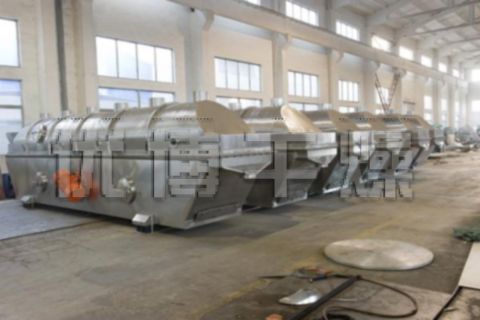 物料自進料進口進入機內(nèi),在振動力作用下,物料沿水平面流化床拋擲,向前連續(xù)運動,熱風(fēng)向上穿過流化床同濕物料換熱后,濕空氣經(jīng)旋風(fēng)分離器除塵后由排風(fēng)1:3排出.干燥物料由排料進口排出。