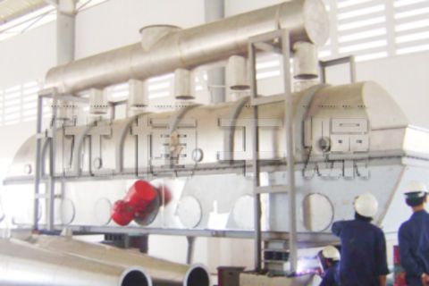 物料自進(jìn)料進(jìn)口進(jìn)入機(jī)內(nèi),在振動(dòng)力作用下,物料沿水平面流化床拋擲,向前連續(xù)運(yùn)動(dòng),熱風(fēng)向上穿過(guò)流化床同濕物料換熱后,濕空氣經(jīng)旋風(fēng)分離器除塵后由排風(fēng)1:3排出.干燥物料由排料進(jìn)口排出。
